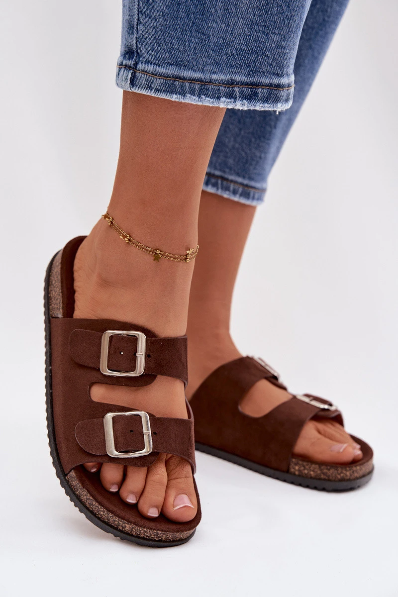 Dámské pantofle s přezkami Čokoládové model 21908427 - Boto