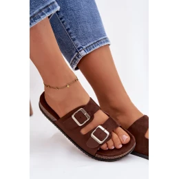 Dámské pantofle s přezkami Čokoládové Oliena