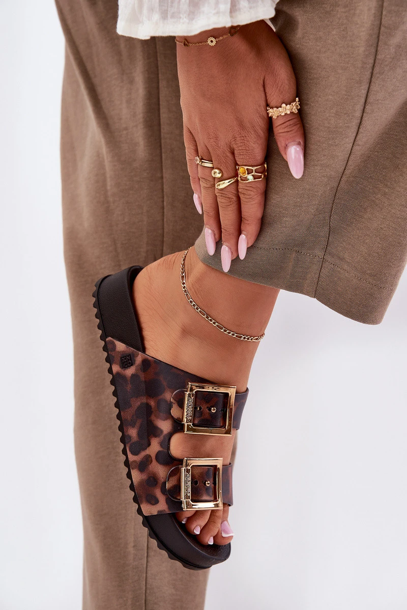 Dámské Pantofle S Přezkami Leopardí Hnědé model 21695871 - Zaxy