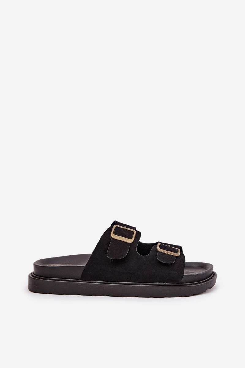 Dámské Pantofle S Přezkami Na Korek Podošve Černé Sercele