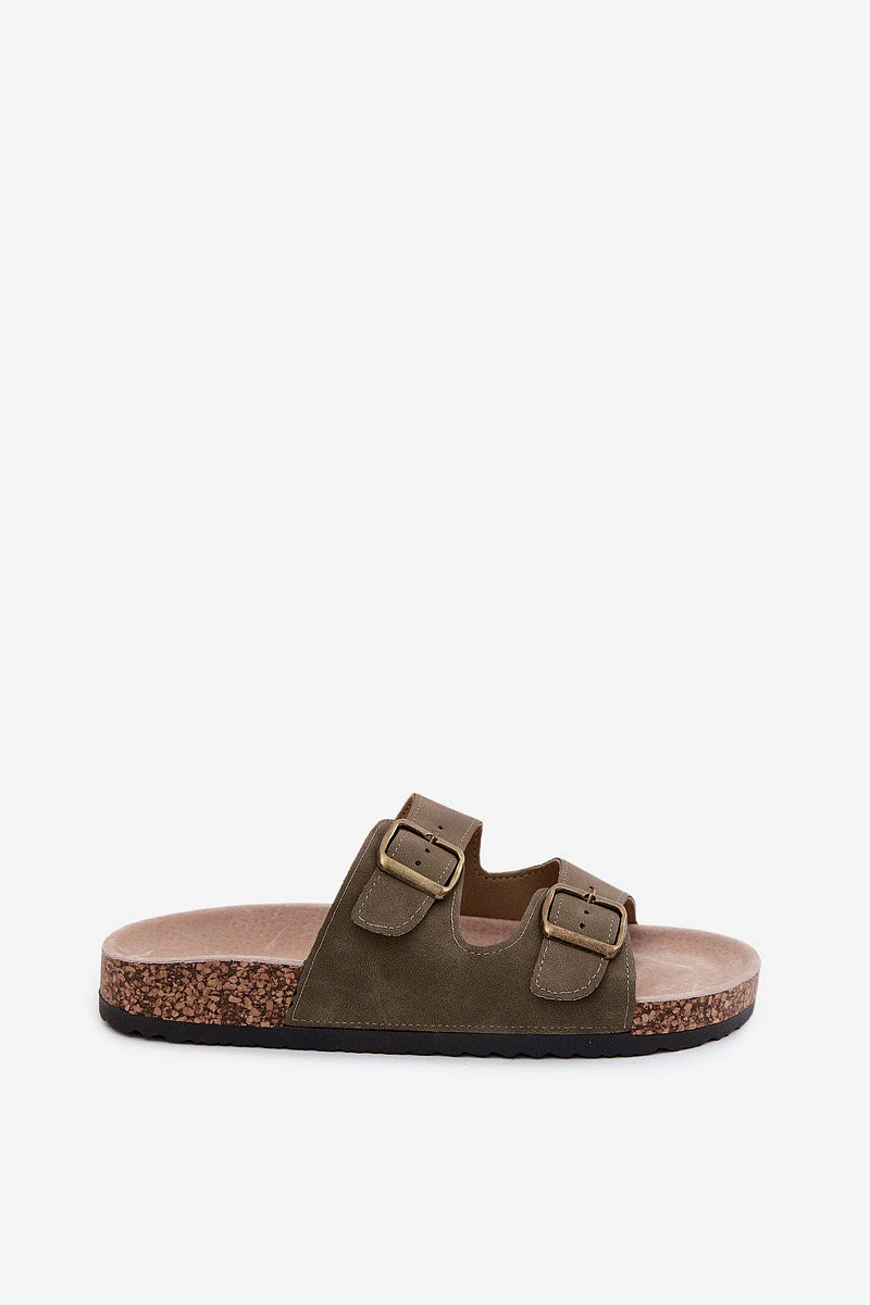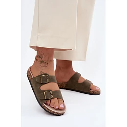 Dámské pantofle s přezkami na korkové podrážce tmavě zelené model 22140697 - Boto
