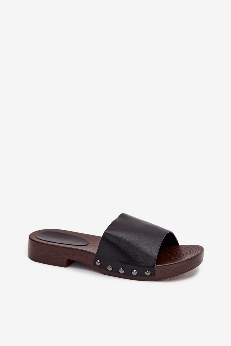 Dámské pantofle s přezkami na nízkém podpatku Černé Brinalle