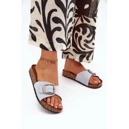 Dámské pantofle vyrobené z eko semiše. Usazené na korkové platformě. Vynikají sponou s nastavitelným páskem, který umožňuje dokonalé přizpůsobení noze. Profilovaná stélka zajišťuje pohodlí po celý den a jejich jednoduchý vzhled je činí ideálními pro každodenní styling. Ideální na letní dny, hodí se k šatům, sukním nebo kalhotám, vnášejí lehkost a styl do každého outfitu. Při výběru velikosti se řiďte tabulkou velikostí.