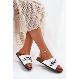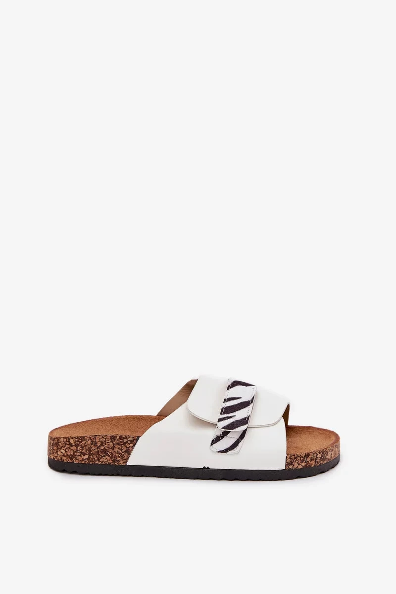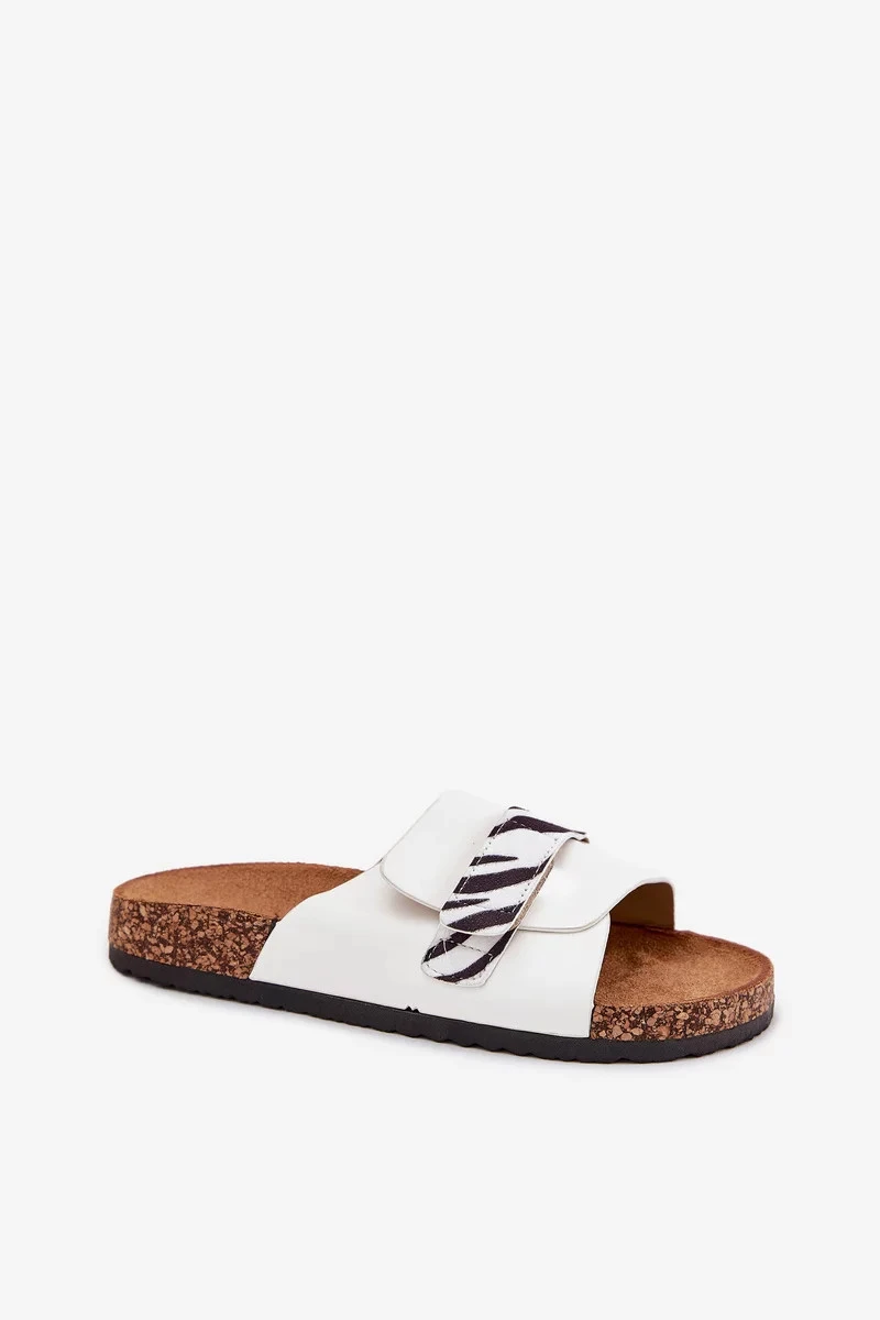 Dámské pantofle s suchým zipem na korkové platformě – bílé Baylin