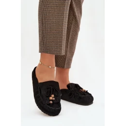 Dámské pantofle s třásněmi a korálky Černé model 21919146 - Boto