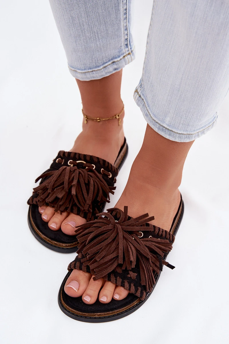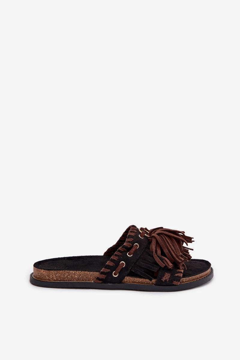 Dámské pantofle s třásněmi Černé model 21937740 - Boto