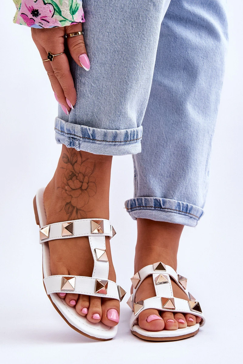 Dámské pantofle s velkými cvočky Bíle model 21618017 - Boto