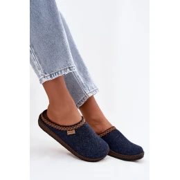 Dámské pantofle s výšivkou model 21725227 tmavě modré - Inblu