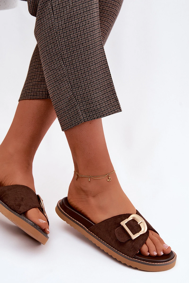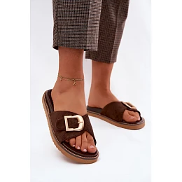 Dámské pantofle s zlatým sponou tmavě béžové model 22125593 - Boto