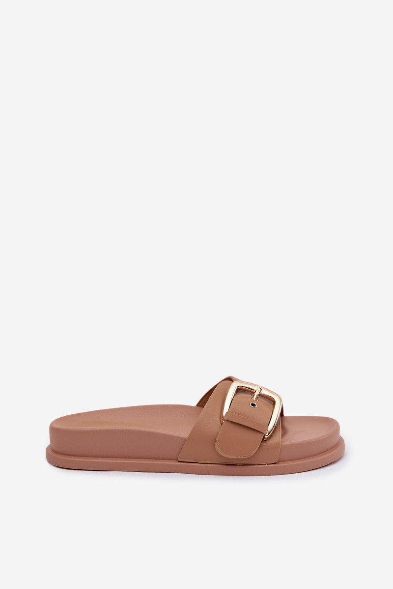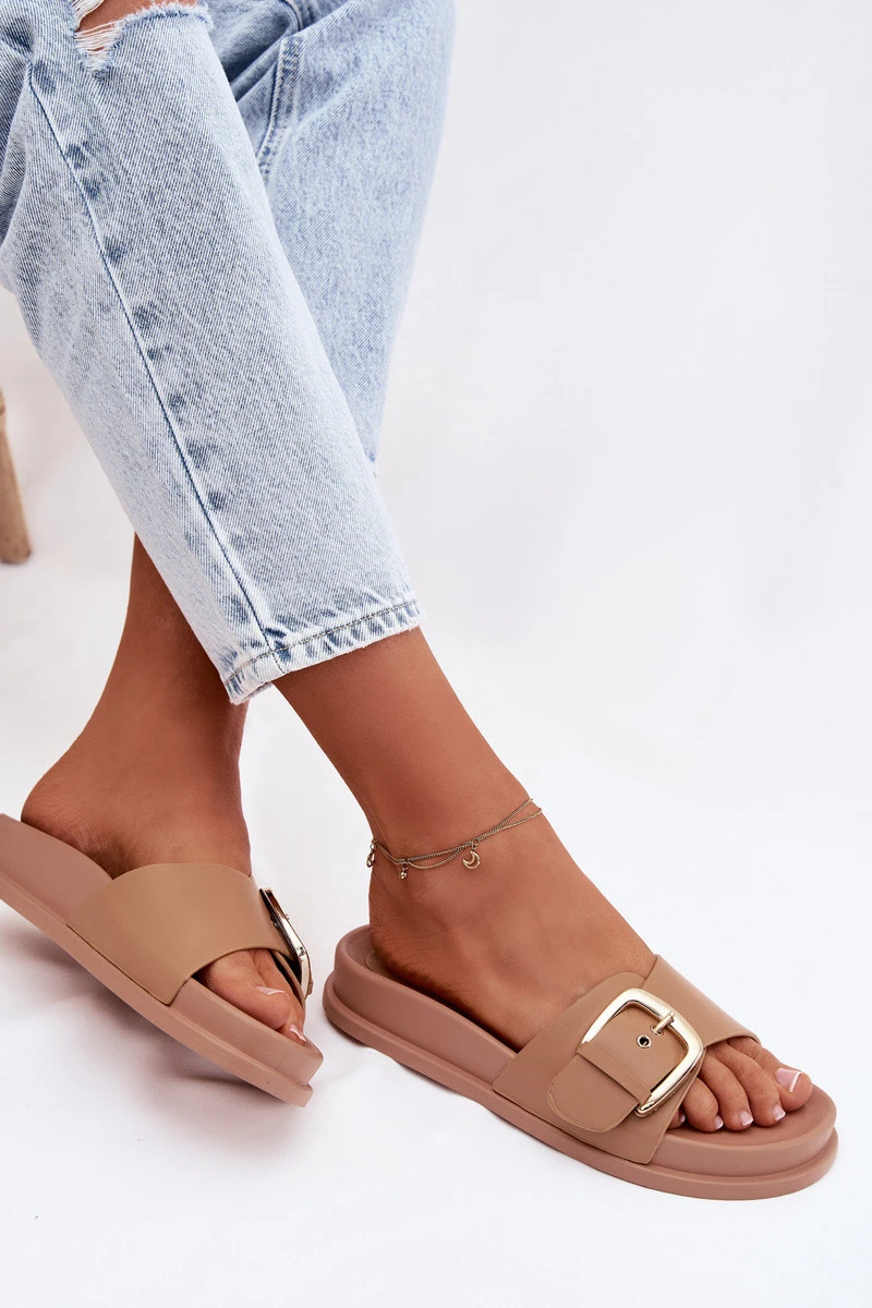 Dámské pantofle s zlatým sponou tmavě béžové Rosivana
