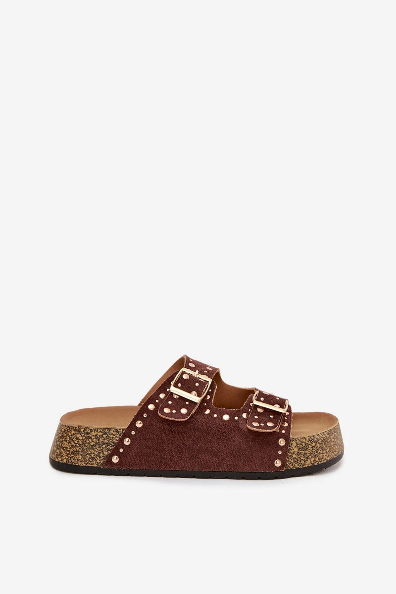 Dámské pantofle s zlatými sponami a knoflíky hnědé model 21919006 - Boto