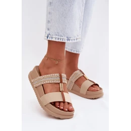 Dámské pantofle se pásky a zlatým detailem Béžové model 21997950 - Boto
