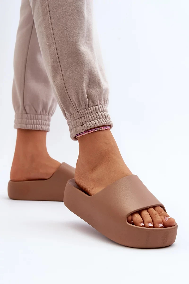 Dámské pantofle se silnou podrážkou, hnědé Oreithano