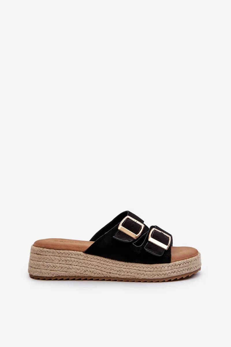 Dámské žabky vyrobené z eko semiše. Sada na platformě a lehkém klínu. Dva nastavitelné popruhy s přezkami vpředu zajišťují dokonalé uchycení. Tento model nejen skvěle vypadá, ale také poskytuje pohodlí pro každodenní nošení. Při výběru velikosti se řiďte tabulkou velikostí.