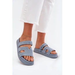 Dámské pantofle vyrobené z eko semiše. Umístěny na platformě. Ozdobení jim dodává jemný charakter a pásek se suchým zipem umožňuje snadné přizpůsobení noze, což zaručuje komfort po celý den. Skvělé na letní dny, skvěle se hodí k neformálním a každodenním stylizacím. Při výběru velikosti se řiďte tabulkou velikostí.