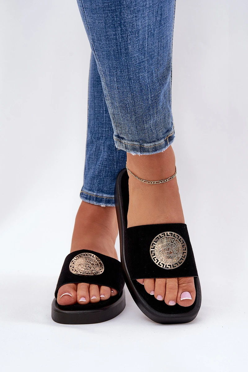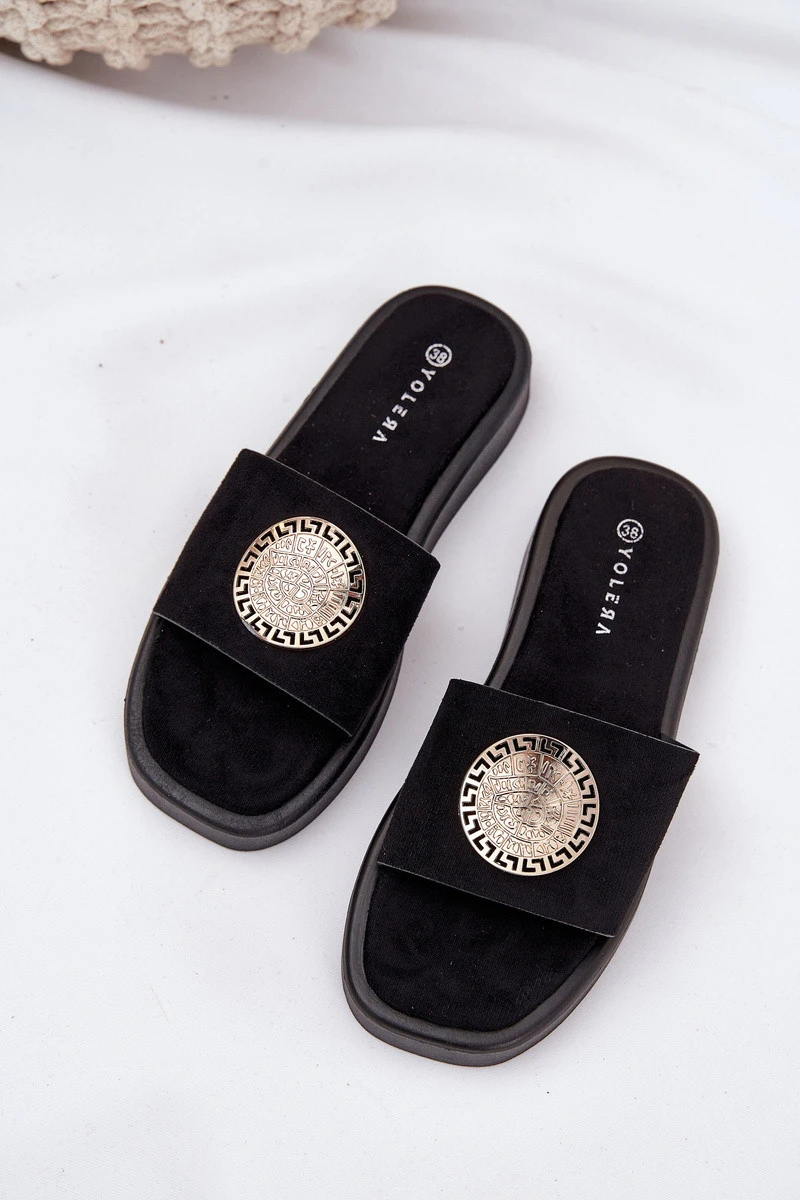 Dámské pantofle se zlatou ozdobou černé model 21685525 - Boto