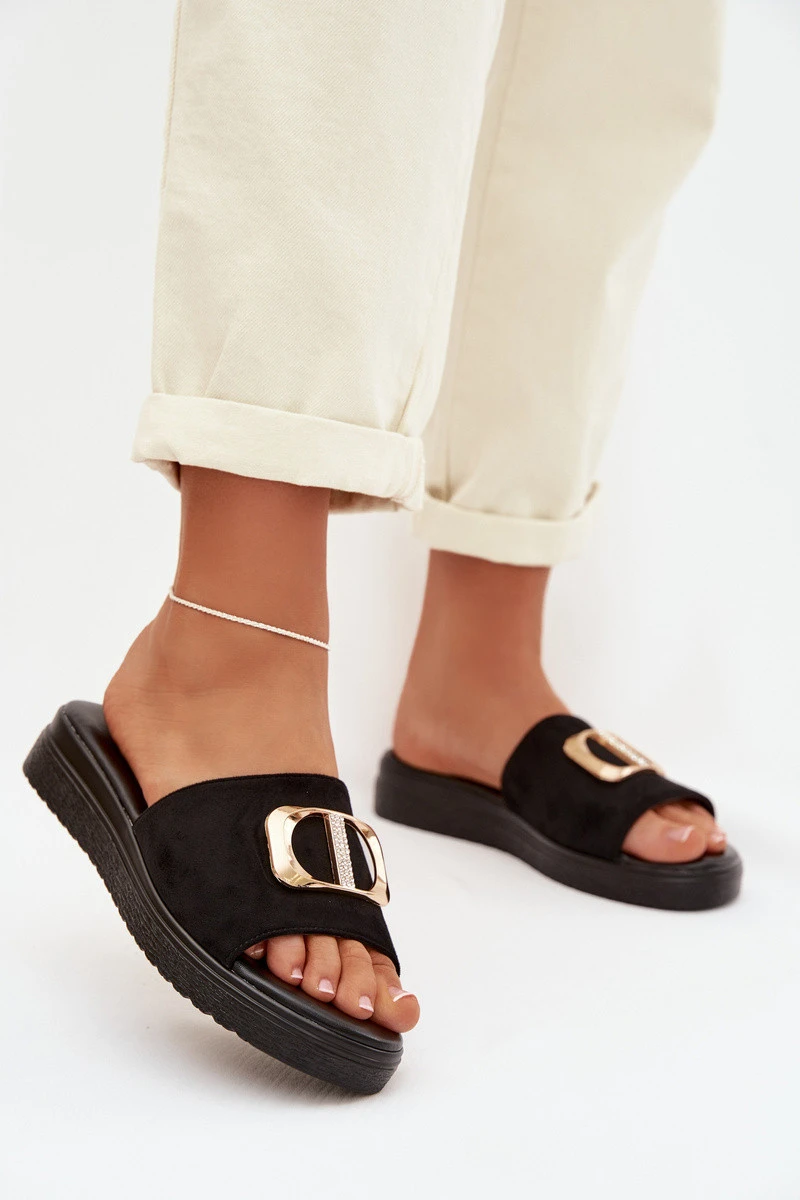 Dámské pantofle se zlatým detailem Černé model 22027948 - Boto