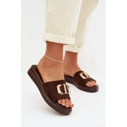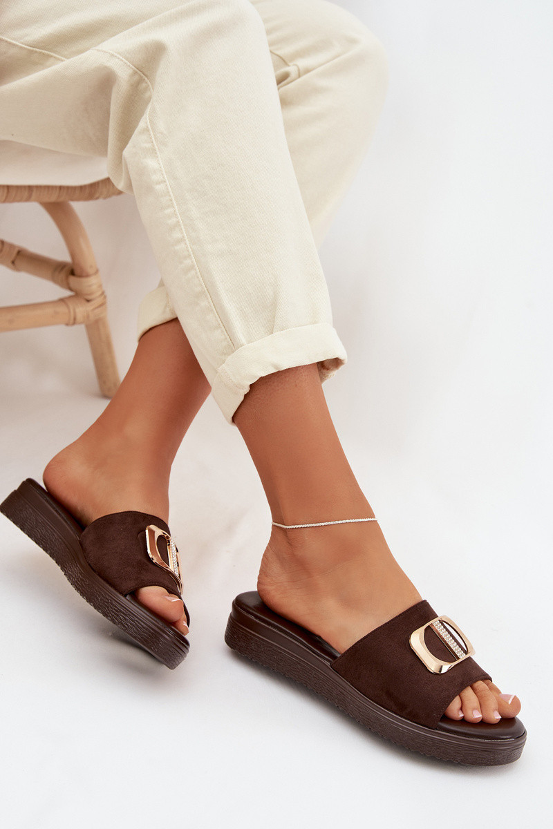 Dámské pantofle se zlatým detailem čokoládové model 22027941 - Boto
