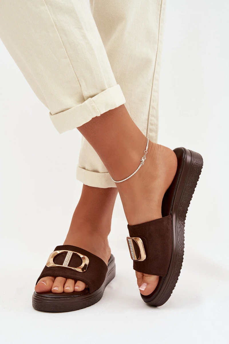 Přidání recenze k Dámské pantofle se zlatým detailem čokoládové model 22027941 - Boto