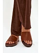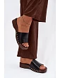 Stylové dámské sandály vyrobené z ekologické kůže jsou pohodlným a módním návrhem na každý den. Jemná platforma zajišťuje pohodlí při nošení a lehce zvýší siluetu, přičemž zajišťuje stabilitu při chůzi. Zlaté cvočky na bocích dodávají celku jemný akcent. Model se skvěle hodí do každodenních outfitů – k džínám, šatům nebo letním setům. Ideální volba pro ženy, které ocení pohodlí spojené s módním detailem. Při výběru velikosti prosíme řídit se tabulkou velikostí. Při výběru velikosti se řiďte tabulkou velikostí.