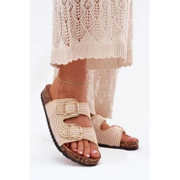 dámské pantofle se zlatými přezkami béžové model 21702091 - Boto