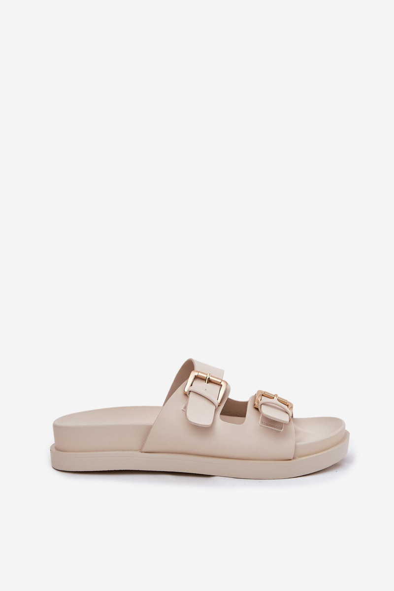 Dámské Pantofle Se Zlatými Přezkami Béžové Sonarea