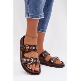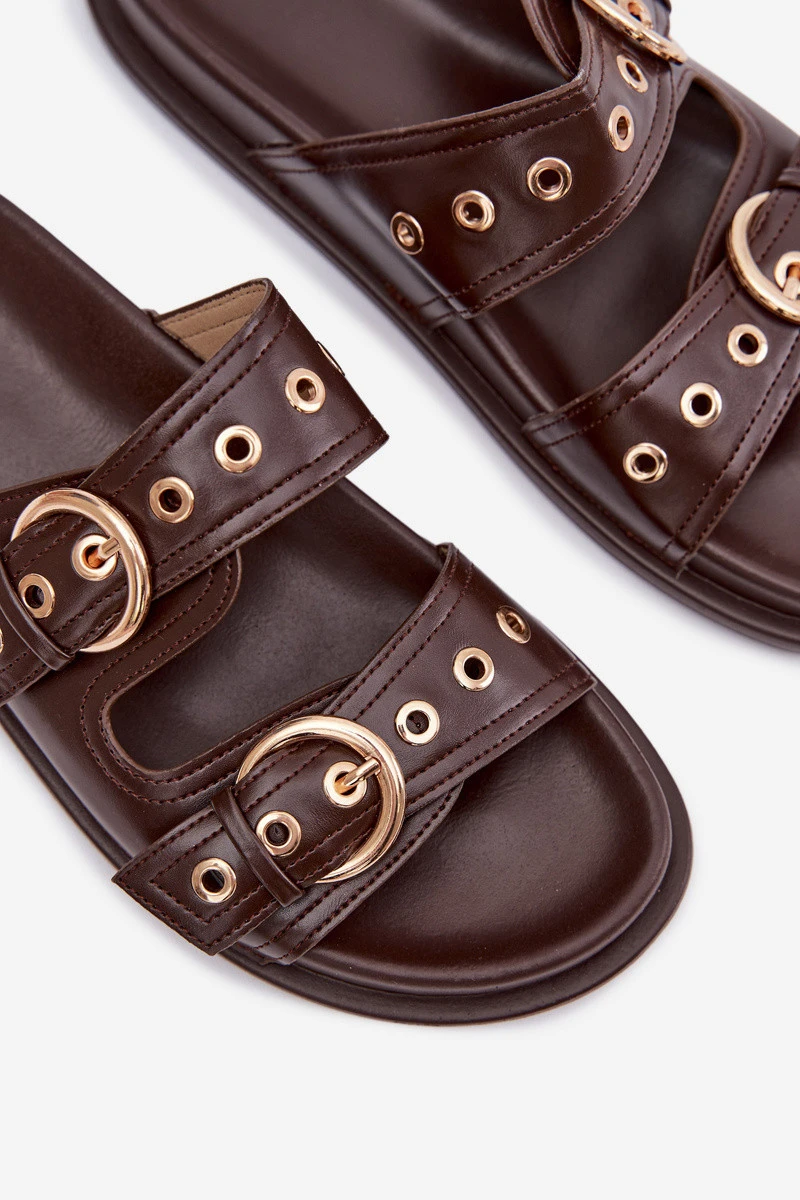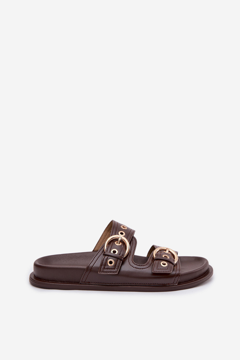 Dámské pantofle se zlatými přezkami kůže čokoládové model 21943360 - Boto