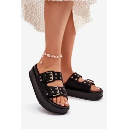 Dámské Pantofle Se Zlatými Přezkami Na Platformě Černé model 21699291 - Boto