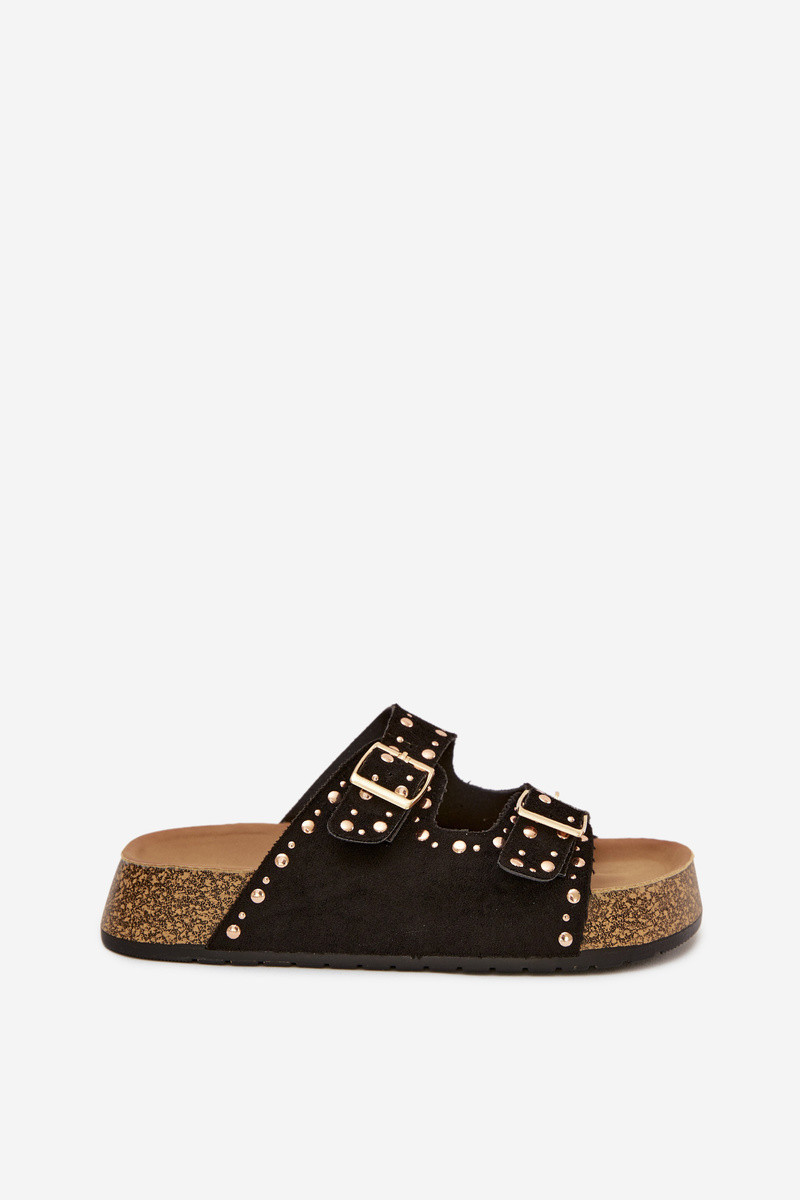 Dámské pantofle se zlatými sponami a knoflíky Černé model 21918999 - Boto