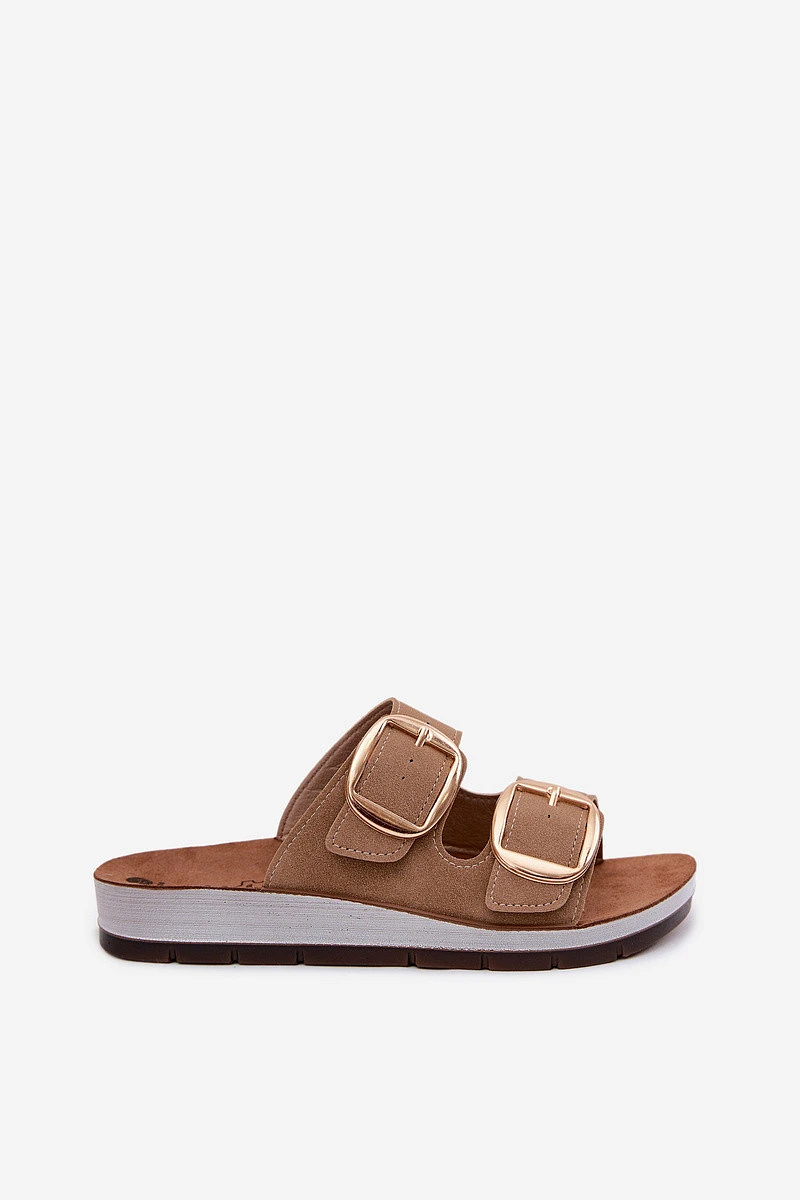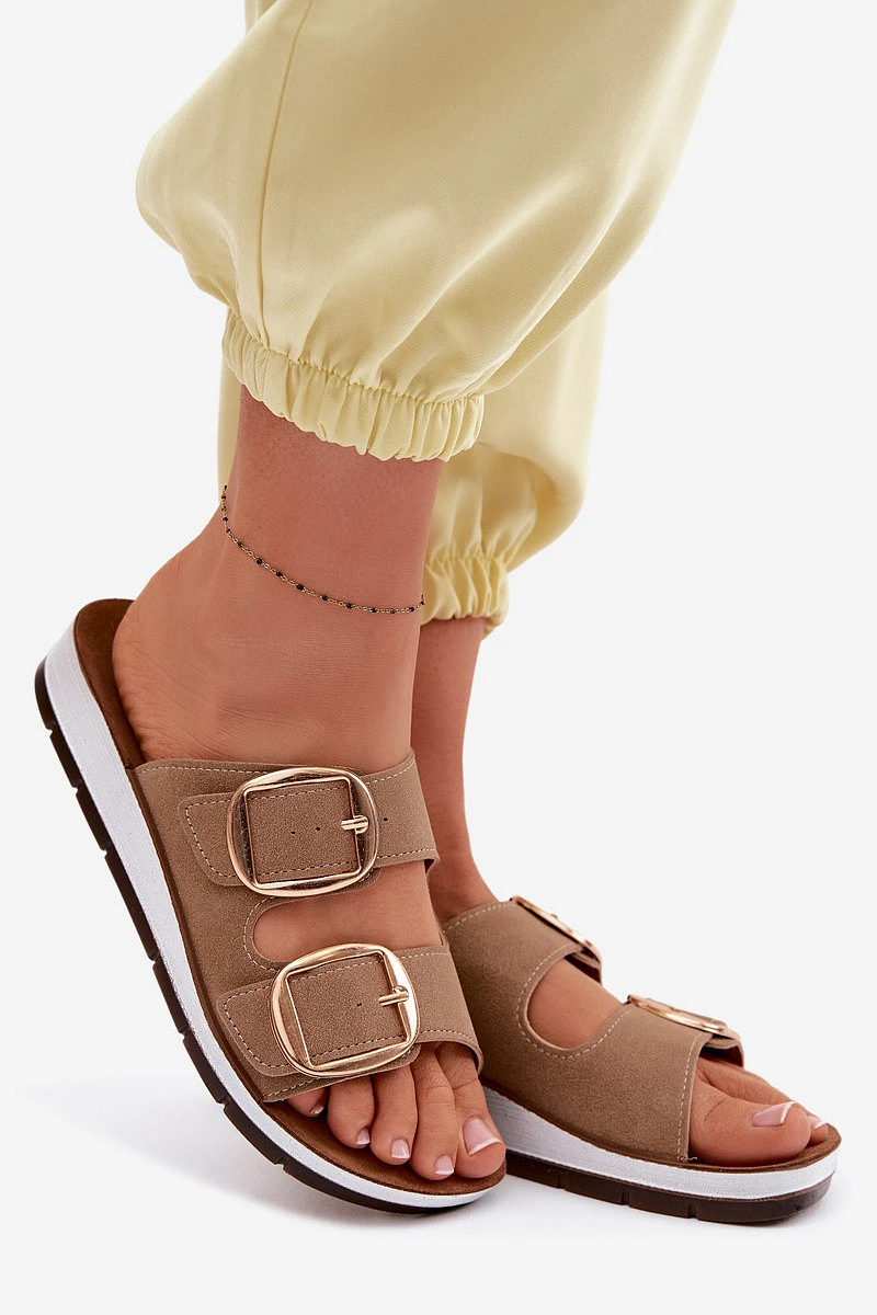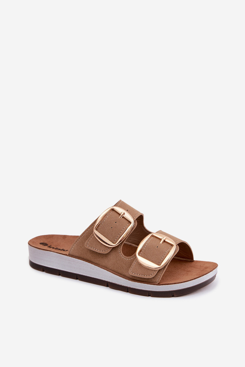 Dámské pantofle se zlatými sponami Inblu CP000061 světle hnědé