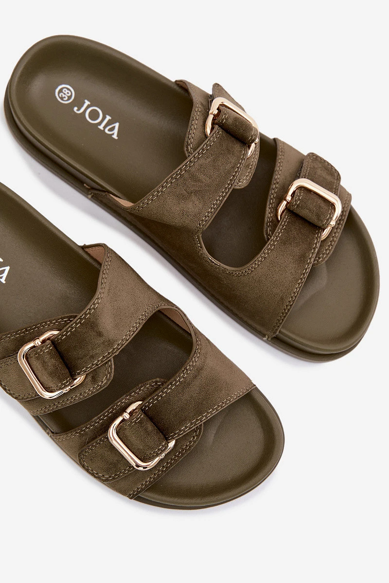 Stylové dámské nazouváky z imitace semiše jsou ideální volbou na teplé dny. Skvěle ladí s mnoha letními outfity. Model se vyznačuje ozdobnými zlatými přezkami, které dodávají celku elegantní a módní vzhled. Měkká textura materiálu zajišťuje pohodlí při nošení a pohodlný střih dělá z nich ideální obuv na každý den. Při výběru velikosti se řiďte tabulkou velikostí.