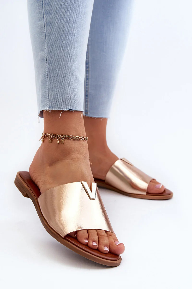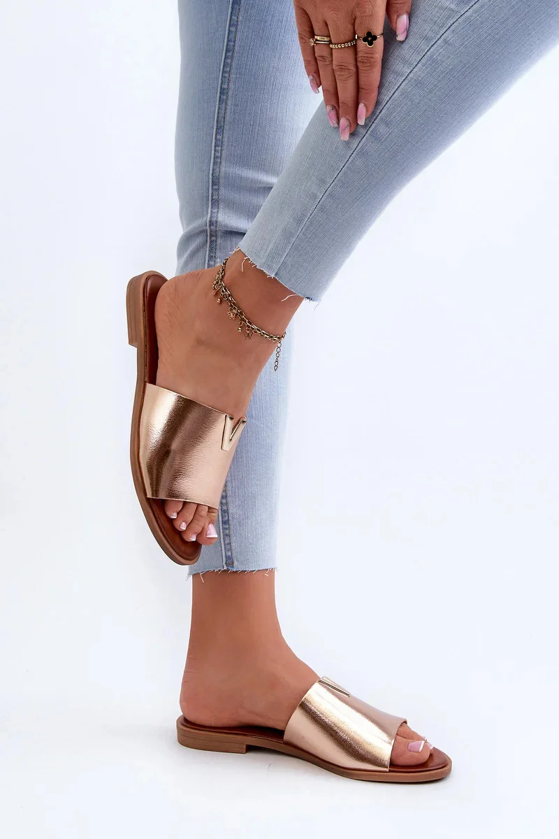 Přidání recenze k Dámské pantofle z eko kůže na plochém podpatku, zlatá Maliha
