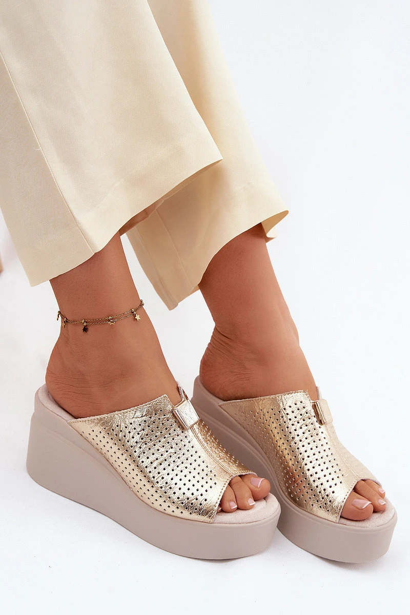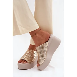 Dámské pantofle z pravé kůže na platformě Vinceza 95392 Zlaté