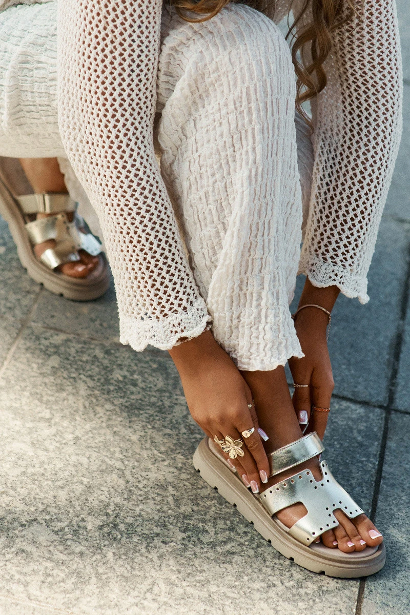 Přidání recenze k Dámské Pantofle Z Přírodní Kůže Na Platformě model 21694302 Zlaté - Zazoo
