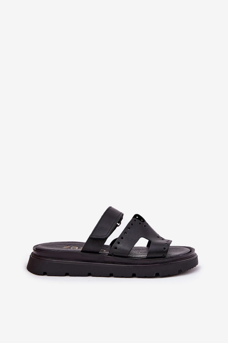 Dámské Pantofle Z Přírodní Kůže Na Platformě Zazoo 40440 Černé