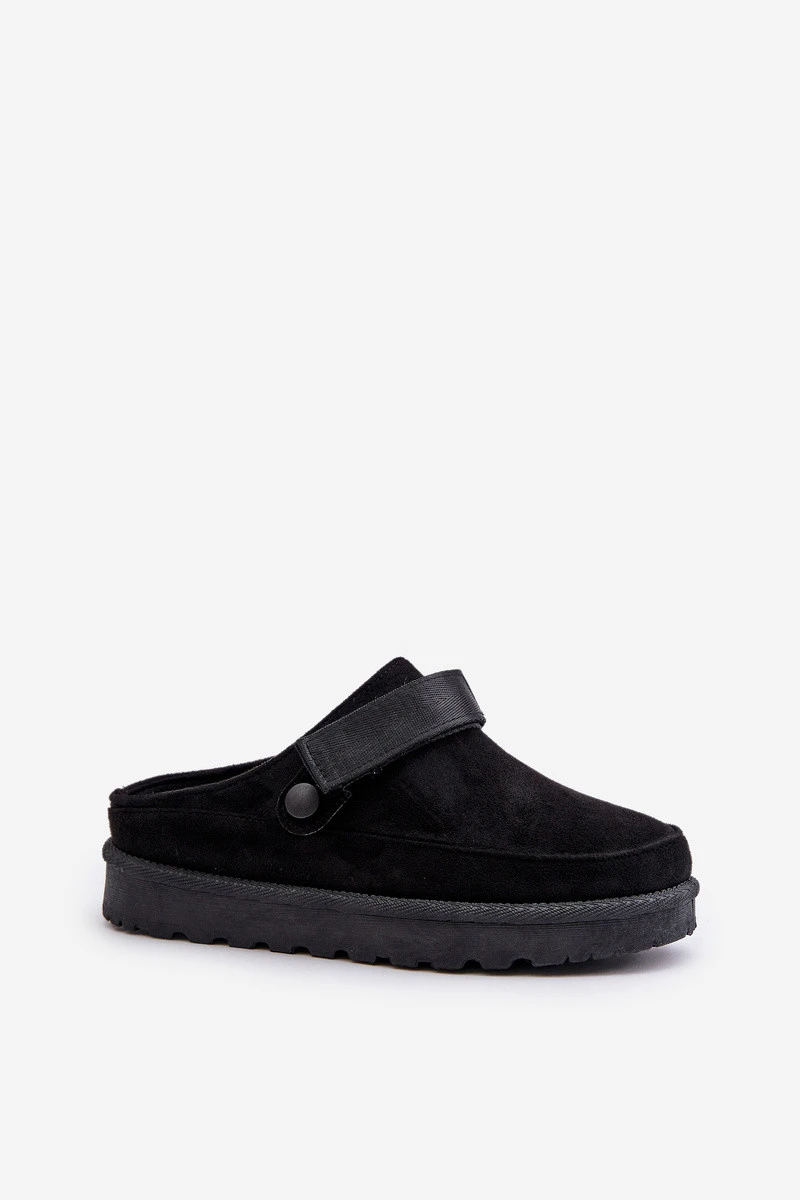 Dámské pantofle vyrobené z eko semiše. Umístěny na platformě. Vnitřek je zateplen příjemným kožíškem, což zajišťuje komfort v chladnějších dnech. Navíc mají pohyblivý pásek na suchý zip, který stabilizuje patu a umožňuje dokonalé přizpůsobení. Ideální na každodenní nošení, kombinují styl s funkčností. Při výběru velikosti se řiďte tabulkou velikostí.