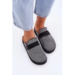 Dámské pantofle zdobené zirkony na platformě černé model 21683239 - Boto