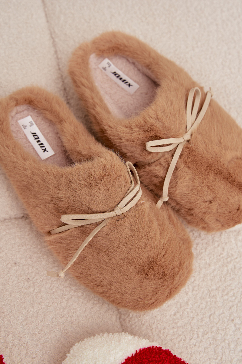 Dámské papuče s kožíškem a mašličkou – camel Minella