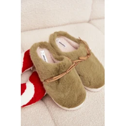 Dámské papuče s kožíškem a mašličkou – zelené Minella