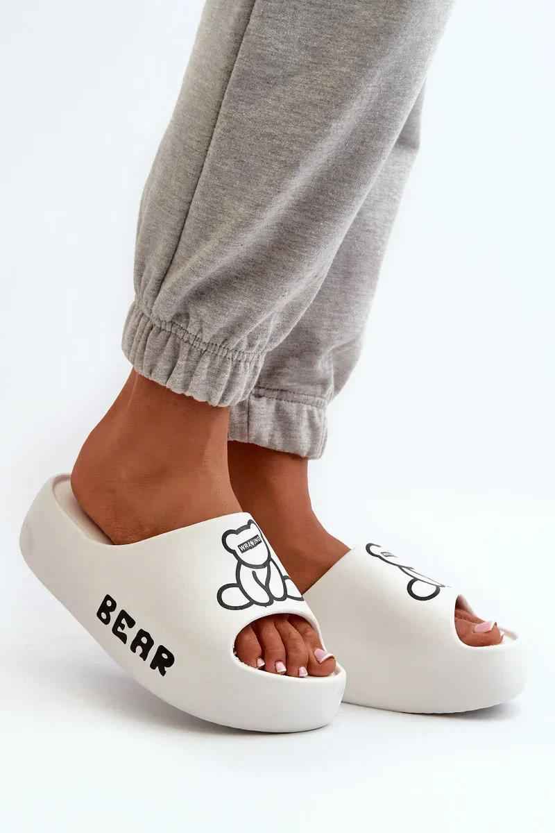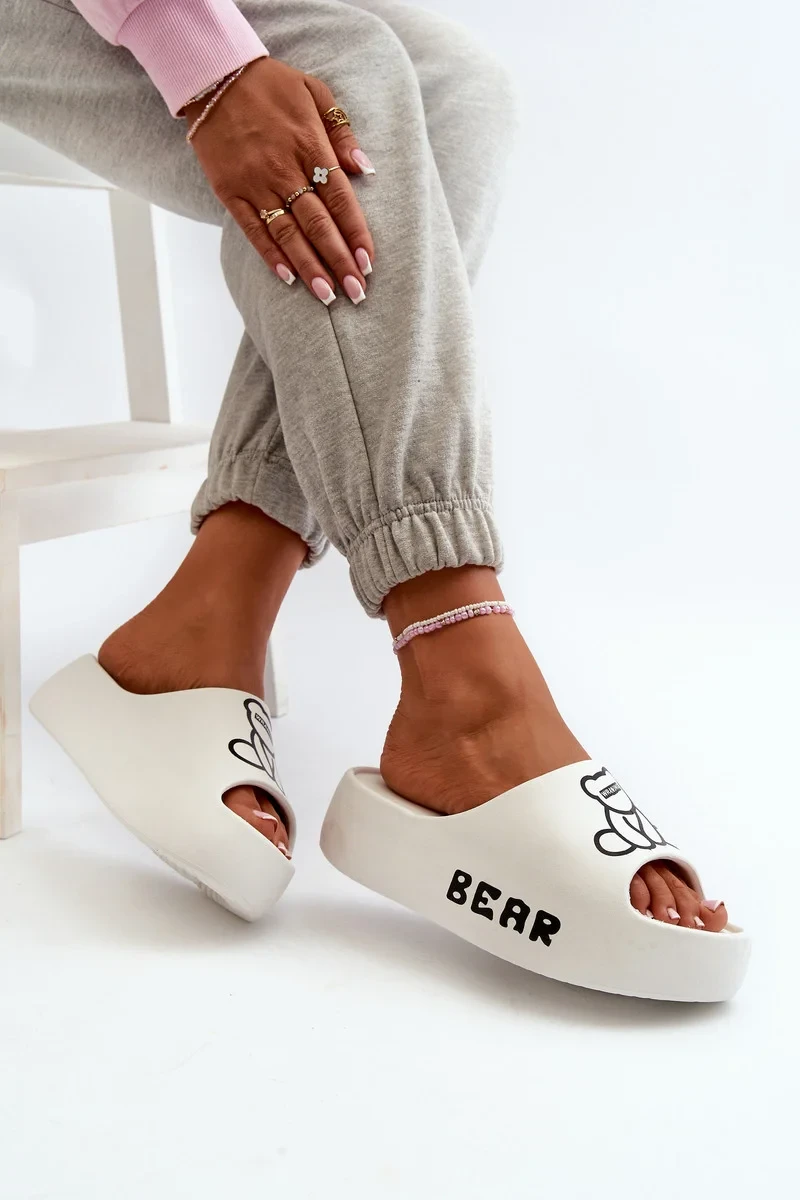 Dámské pěnové pantofle na masivní podrážce s medvídkem, bílá Lamira
