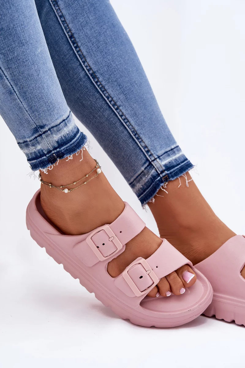 Dámské pantofle z lehkého pěnového materiálu na platformě jsou pohodlnou a stylovou volbou pro každodenní nošení. Zvýšená podešev pomáhá tlumit došlap a zajišťuje stabilitu při chůzi. Růžové provedení působí jemně a svěže, díky čemuž pantofle hezky doplní letní i domácí outfit.
