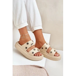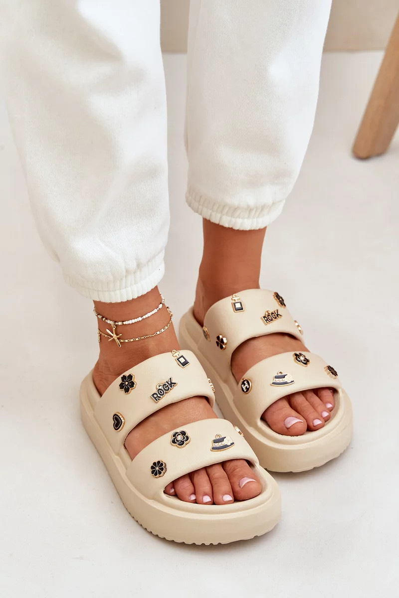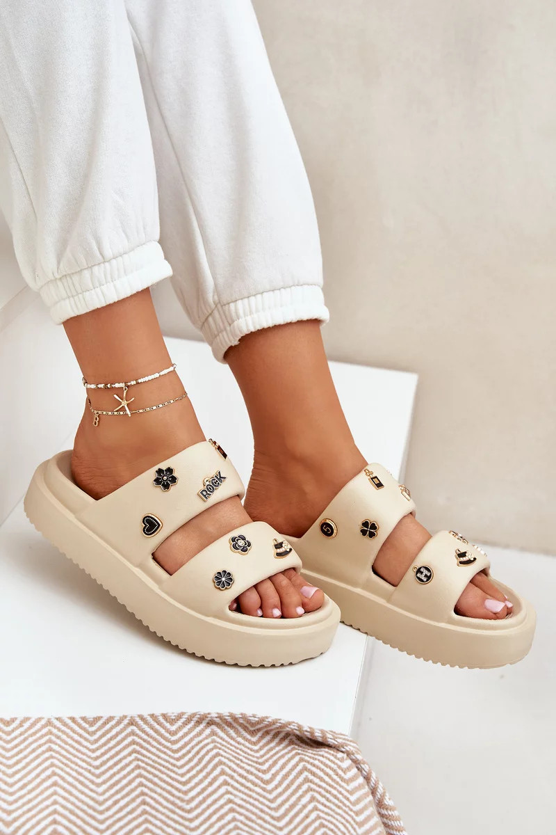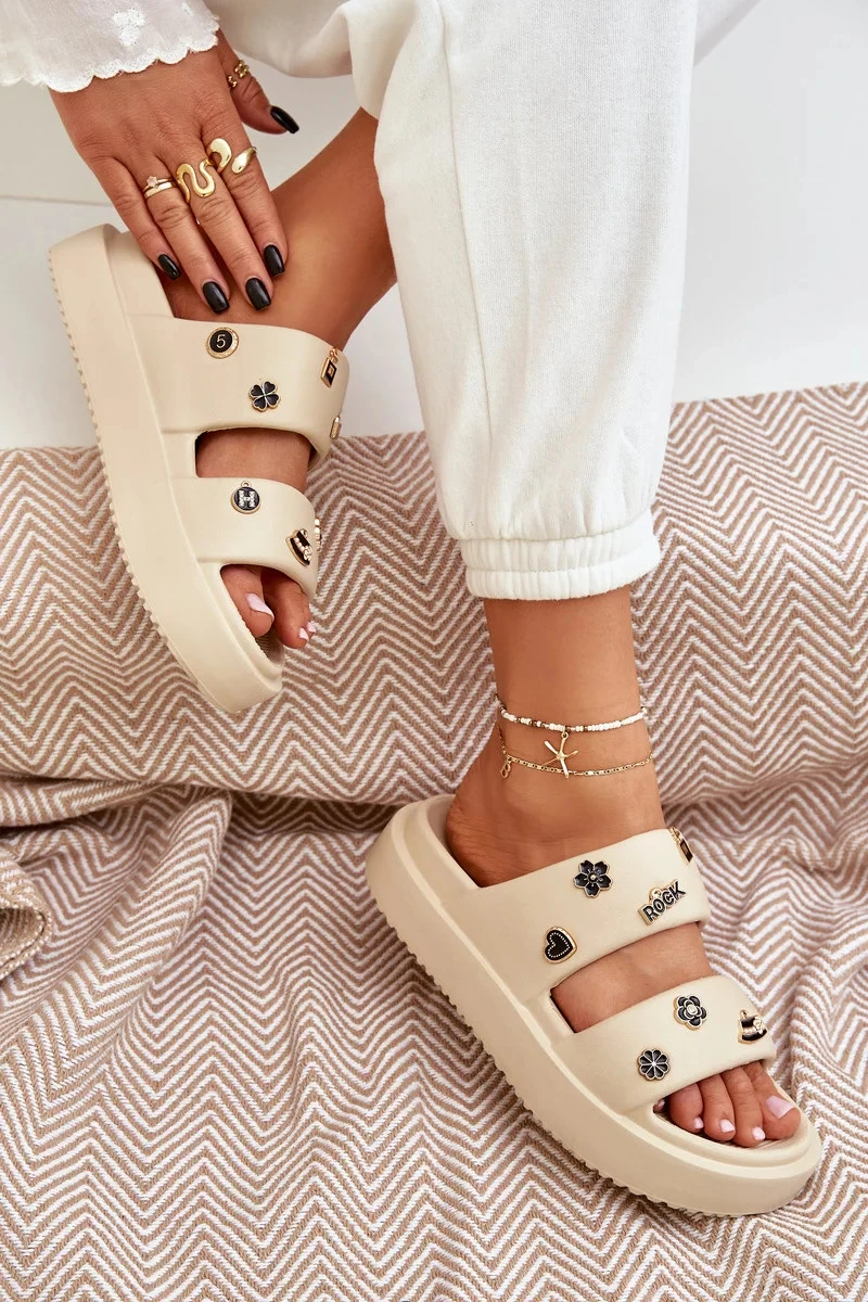 Dámské pěnové pantofle s ozdobnými připínkami – béžové