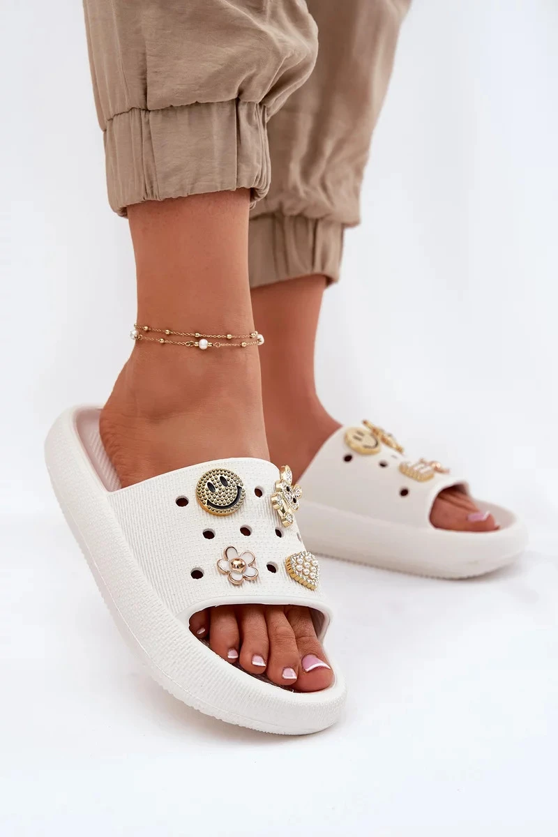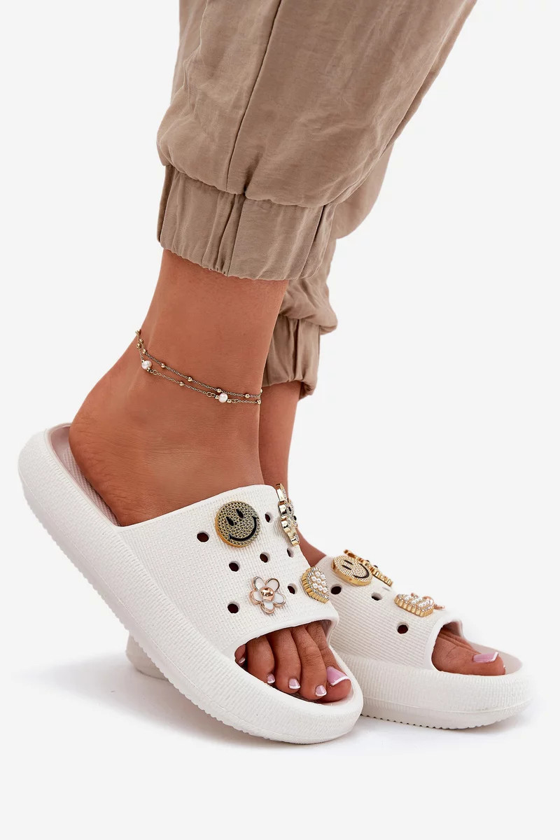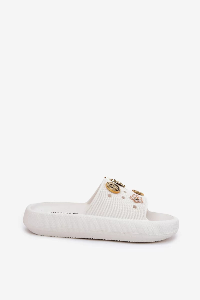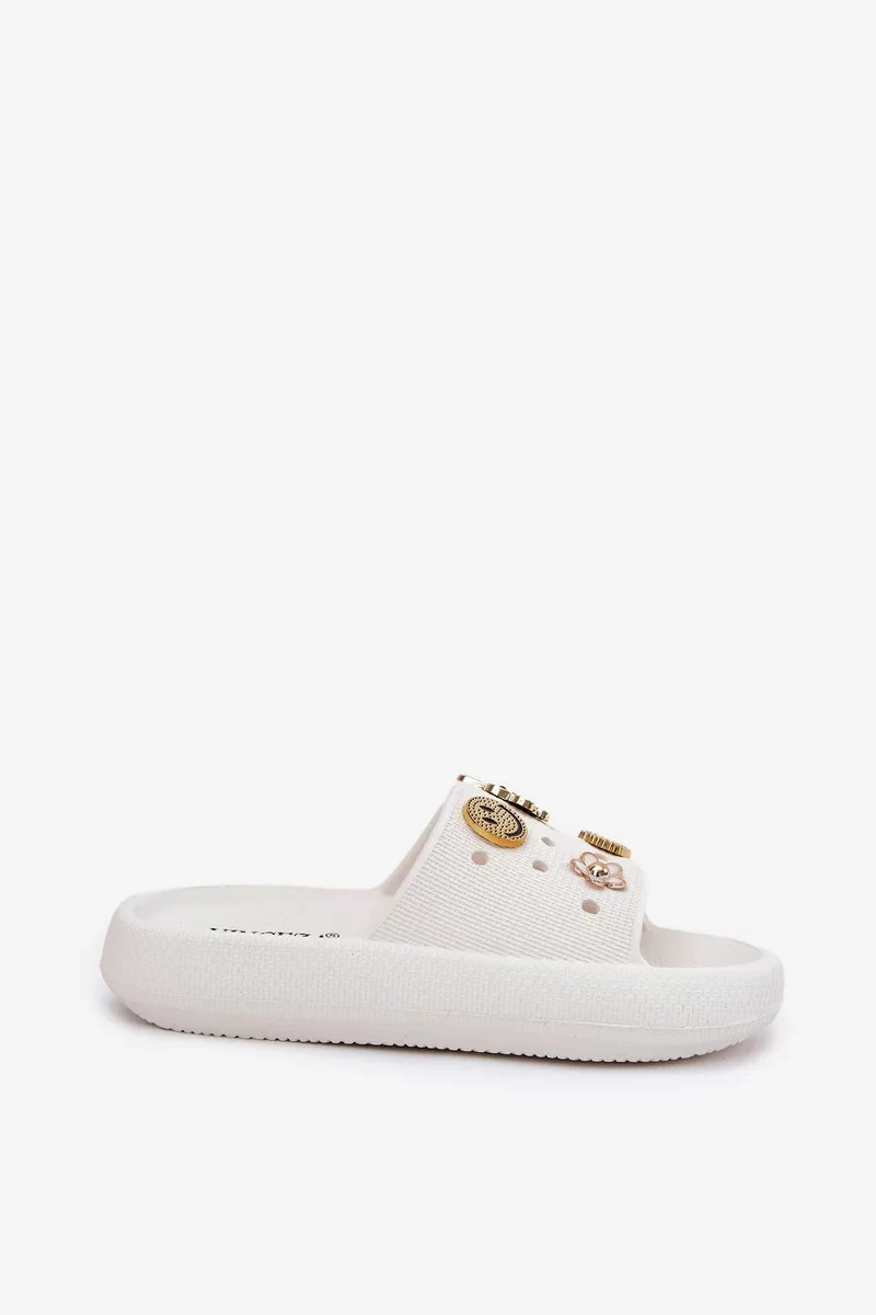 Dámské pěnové pantofle s ozdobnými připínkami Vinceza – bílé