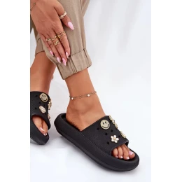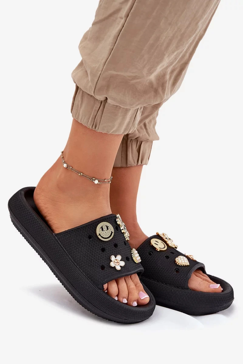 Dámské pěnové pantofle s ozdobnými připínkami Vinceza – černé