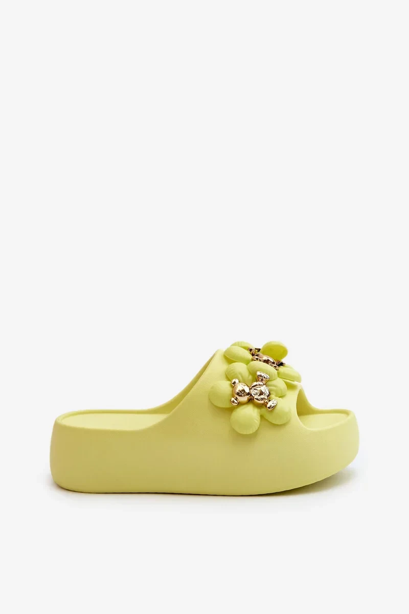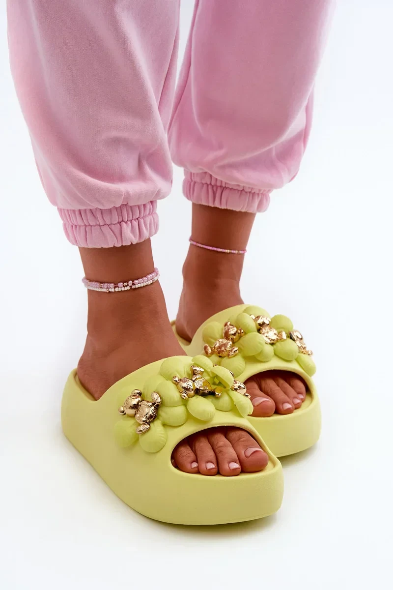 Dámské pěnové pantofle se zdobením na silné podrážce, limetka Bremavia