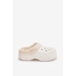 Dámské pěnové pantofle zateplené kožíškem – bílé Palvine