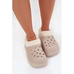Dámské pěnové pantofle zateplené kožíškem – khaki Palvine