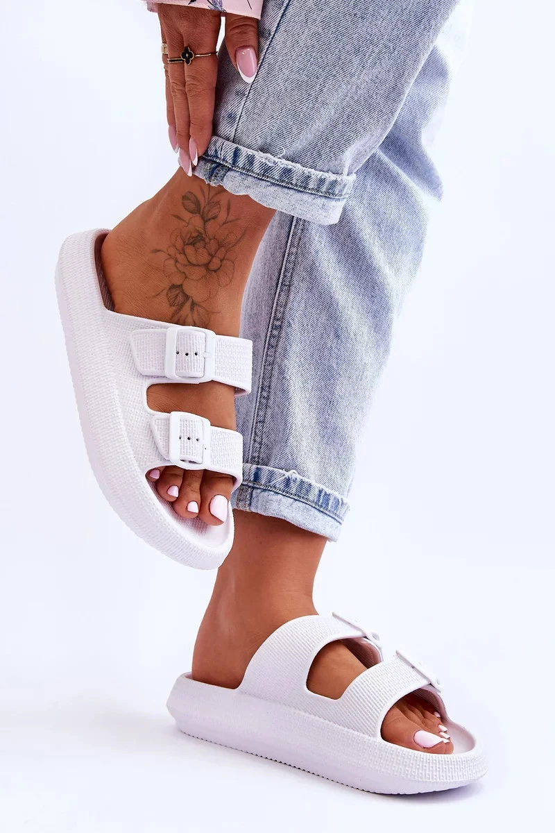 Dámské pěnové sandály s pruhy Bíle Sharmen