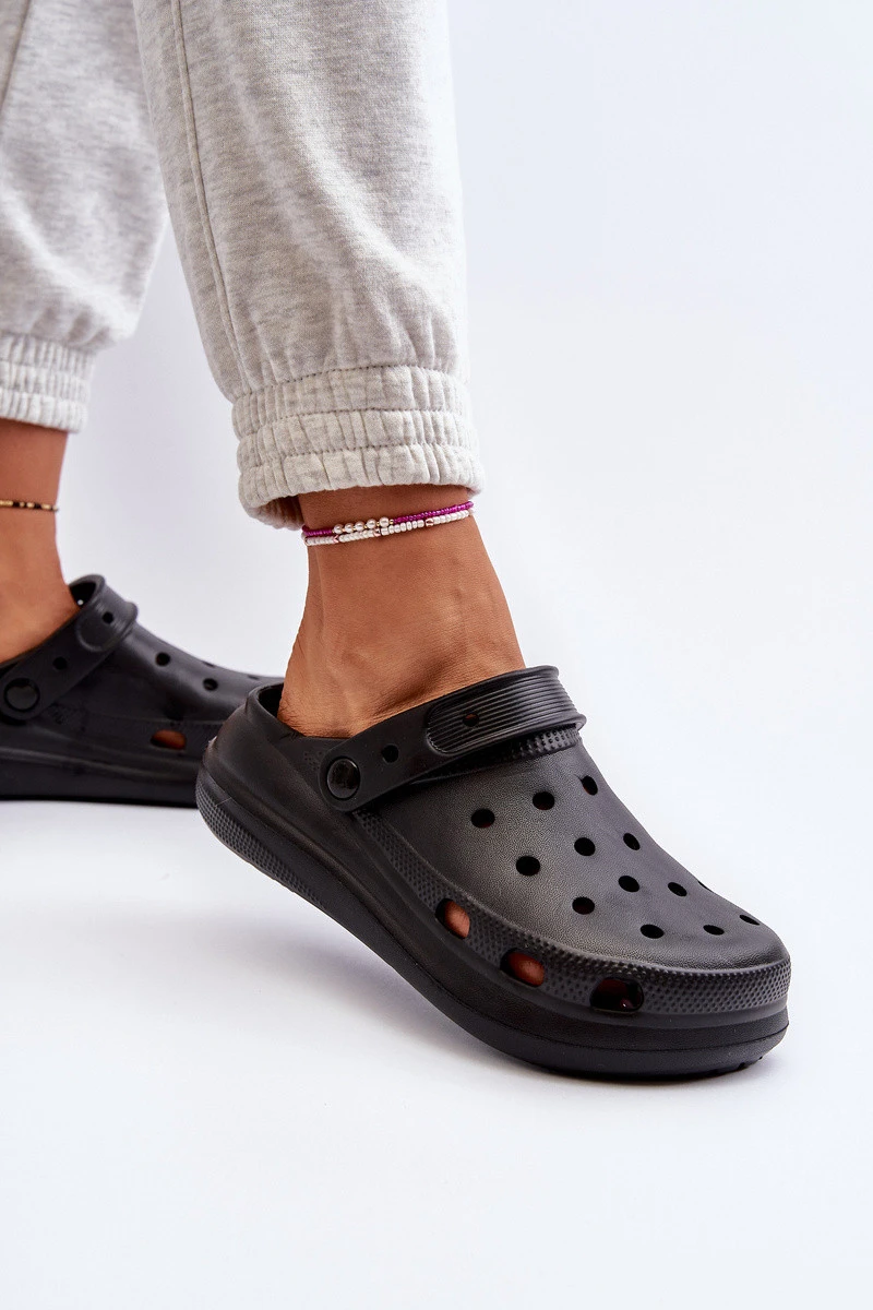Dámské žabky vyrobené z lehkého pěnového materiálu. Pohyblivý popruh zajišťuje stabilitu a chrání před uklouznutím. Platforma zaručuje pohodlí při nošení. Další otvory v nártu umožňují vhodný proudění vzduchu, což zajišťuje pohodlí i v horkých dnech. Při výběru velikosti se řiďte tabulkou velikostí.