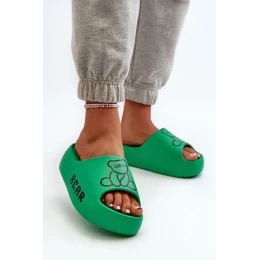 Dámské pěnové žabky na masivní podrážce s medvídkem Zelené Lamira